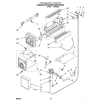 The Ice Container Assembly is an OEM part for Whirlpool refrigerators. This assembly includes the ice bin, where ice is collected, and often features integrated mechanisms or augers for dispensing ice through the refrigerator's door.