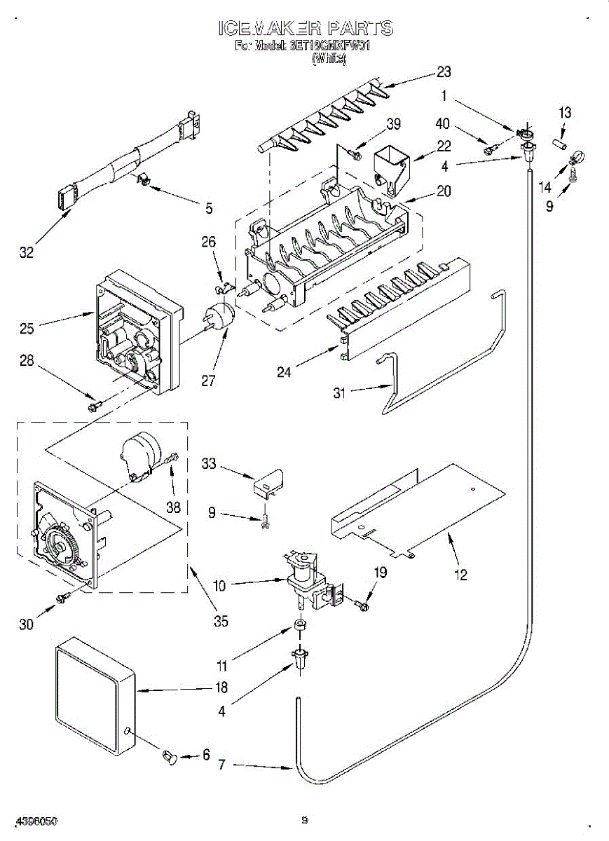 Parts for Whirlpool 3ET18GMXFW01: 05 - Icemaker Parts