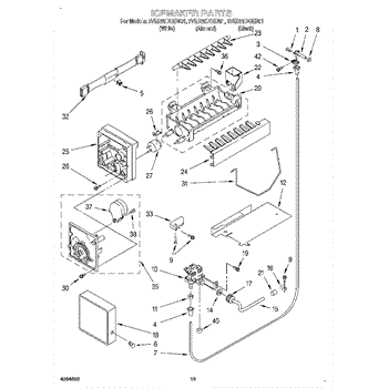 Causes of a bad Ice Container Assembly can include cracks or damage to the bin, which can lead to ice leaks or accumulation in the freezer; wear or malfunction of the dispensing mechanism, affecting its ability to deliver ice.