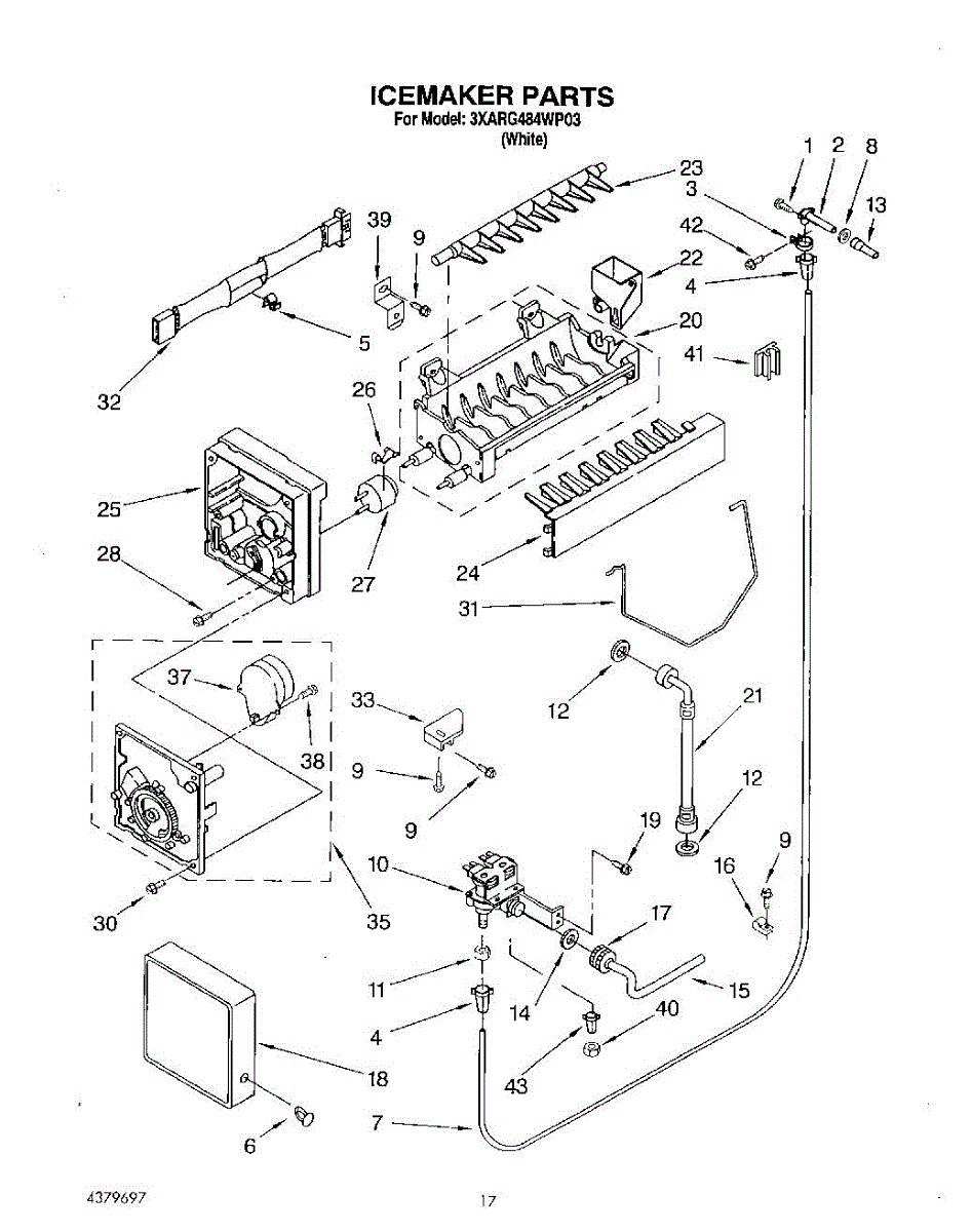 Ice maker leaking or shutoff arm broken? This fill cup and bearing assembly directs water into the mold and supports the arm. 15-minute DIY fix.