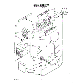 The Ice Container Assembly is an OEM part for Whirlpool refrigerators. This assembly includes the ice bin, where ice is collected, and often features integrated mechanisms or augers for dispensing ice through the refrigerator's door.