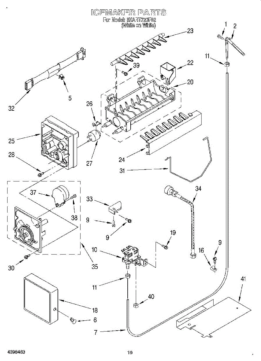 Ice maker leaking or shutoff arm broken? This fill cup and bearing assembly directs water into the mold and supports the arm. 15-minute DIY fix.