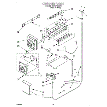 The Ice Container Assembly is an OEM part for Whirlpool refrigerators. This assembly includes the ice bin, where ice is collected, and often features integrated mechanisms or augers for dispensing ice through the refrigerator's door.