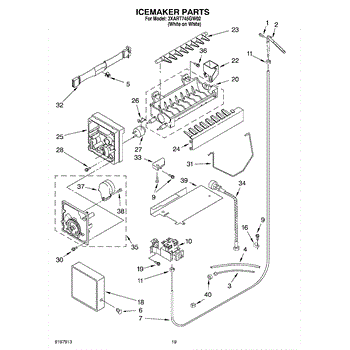 The Ice Container Assembly is an OEM part for Whirlpool refrigerators. This assembly includes the ice bin, where ice is collected, and often features integrated mechanisms or augers for dispensing ice through the refrigerator's door.