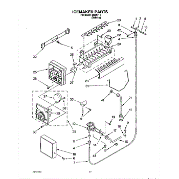 The Ice Container Assembly is an OEM part for Whirlpool refrigerators. This assembly includes the ice bin, where ice is collected, and often features integrated mechanisms or augers for dispensing ice through the refrigerator's door.