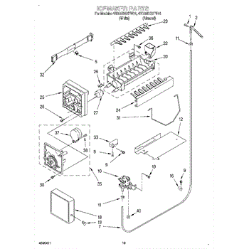 The Ice Container Assembly is an OEM part for Whirlpool refrigerators. This assembly includes the ice bin, where ice is collected, and often features integrated mechanisms or augers for dispensing ice through the refrigerator's door.