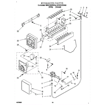 The Ice Container Assembly is an OEM part for Whirlpool refrigerators. This assembly includes the ice bin, where ice is collected, and often features integrated mechanisms or augers for dispensing ice through the refrigerator's door.