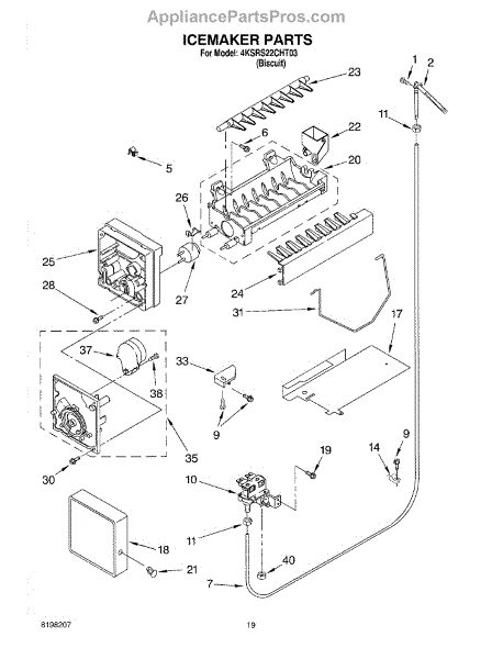 This is the complete horizontal ice dispenser bucket assembly with crusher. It fits 22 cubic foot refrigerator models. For 20 cubic foot models order WP2209778. For 25 and 27 cubic foot models order WPW10312300.