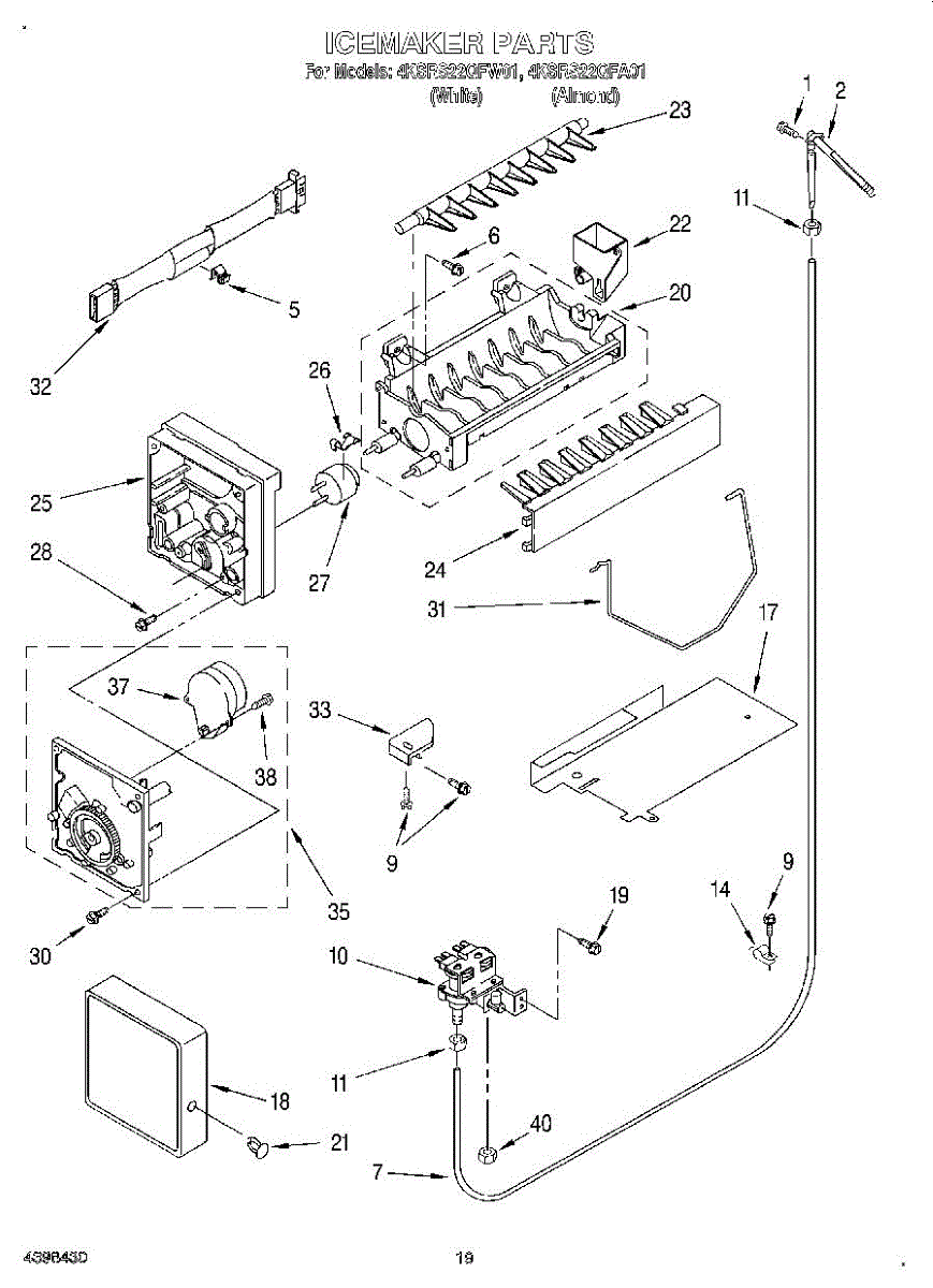 Ice maker leaking or shutoff arm broken? This fill cup and bearing assembly directs water into the mold and supports the arm. 15-minute DIY fix.