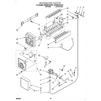 The Ice Container Assembly is an OEM part for Whirlpool refrigerators. This assembly includes the ice bin, where ice is collected, and often features integrated mechanisms or augers for dispensing ice through the refrigerator's door.