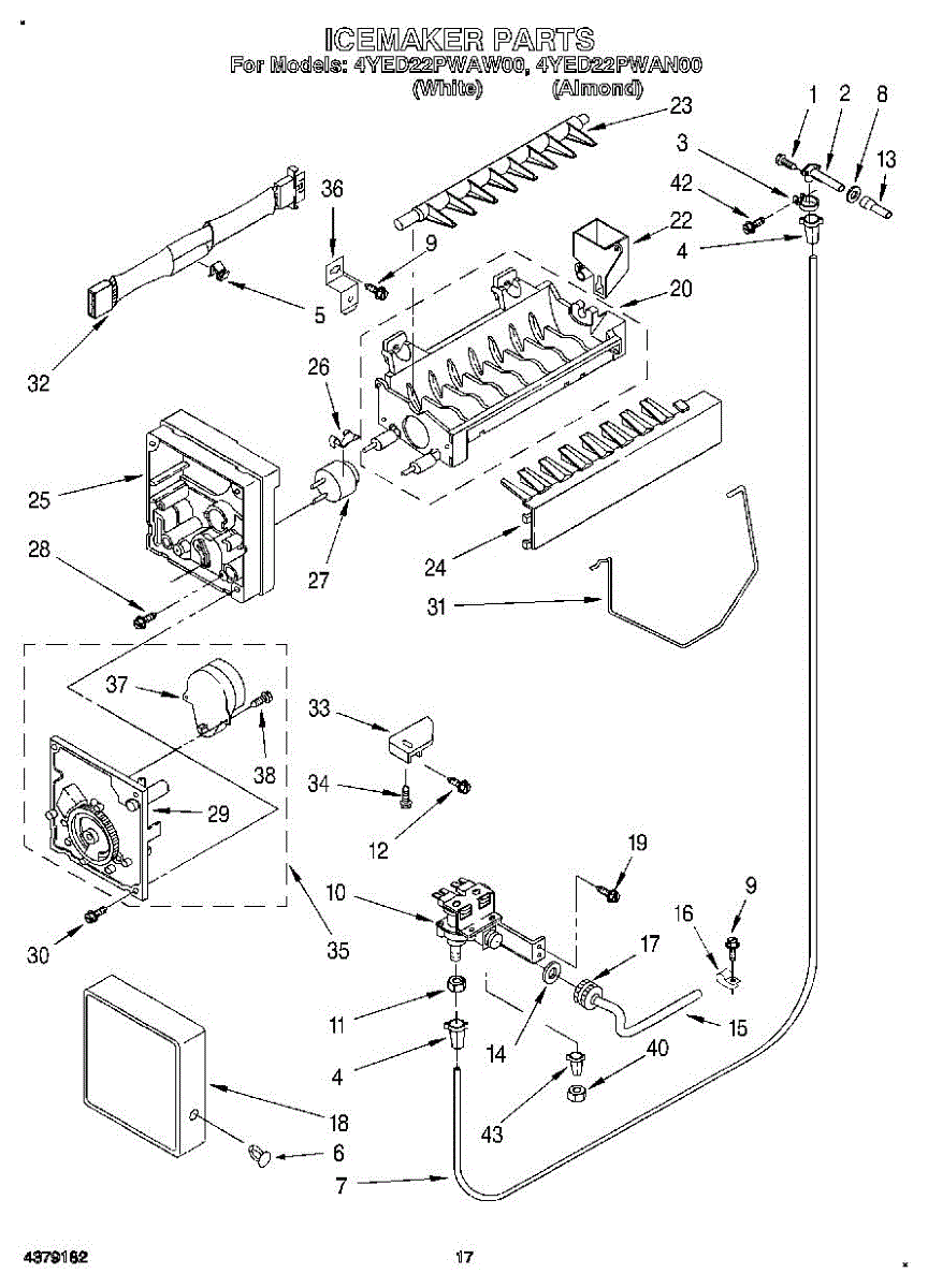 Ice maker leaking or shutoff arm broken? This fill cup and bearing assembly directs water into the mold and supports the arm. 15-minute DIY fix.