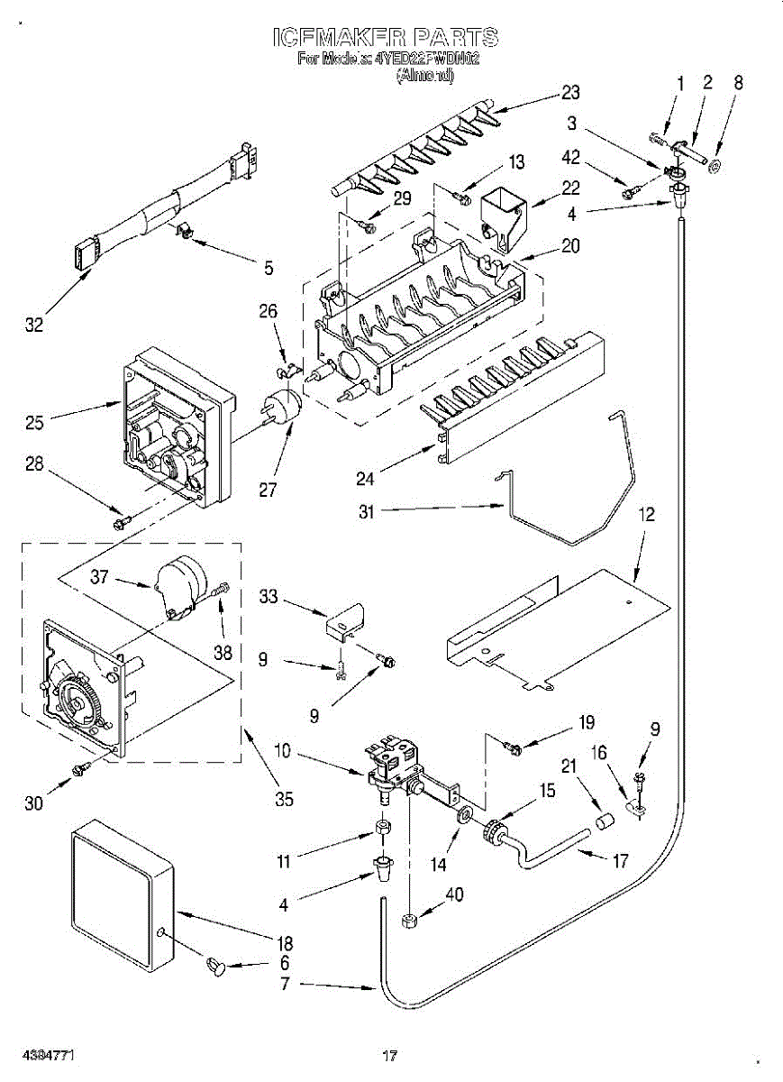 Ice maker leaking or shutoff arm broken? This fill cup and bearing assembly directs water into the mold and supports the arm. 15-minute DIY fix.