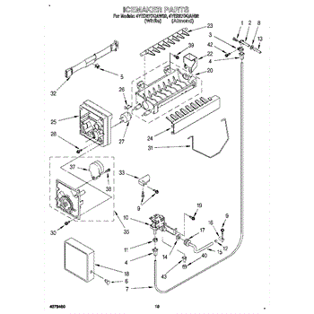 The Ice Container Assembly is an OEM part for Whirlpool refrigerators. This assembly includes the ice bin, where ice is collected, and often features integrated mechanisms or augers for dispensing ice through the refrigerator's door.