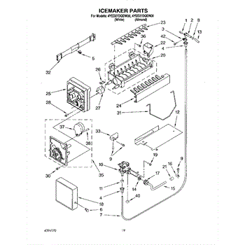 The Ice Container Assembly is an OEM part for Whirlpool refrigerators. This assembly includes the ice bin, where ice is collected, and often features integrated mechanisms or augers for dispensing ice through the refrigerator's door.