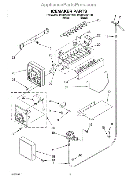 Parts for Whirlpool 4YGD25DCHT01: 12 - Icemaker Parts