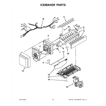 The icemaker fill cup installs inside the refrigerator icemaker assembly. Replace this part if it's cracked, broken, or missing to restore proper function.