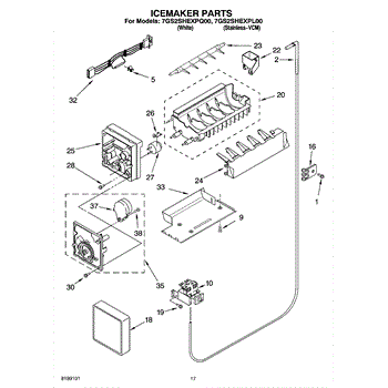 Parts for Whirlpool 7GS2SHEXPQ00: 10 - Icemaker Parts