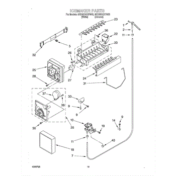 The Ice Container Assembly is an OEM part for Whirlpool refrigerators. This assembly includes the ice bin, where ice is collected, and often features integrated mechanisms or augers for dispensing ice through the refrigerator's door.