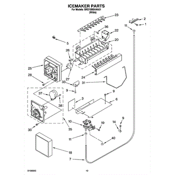 Causes of a bad Ice Container Assembly can include cracks or damage to the bin, which can lead to ice leaks or accumulation in the freezer; wear or malfunction of the dispensing mechanism, affecting its ability to deliver ice.