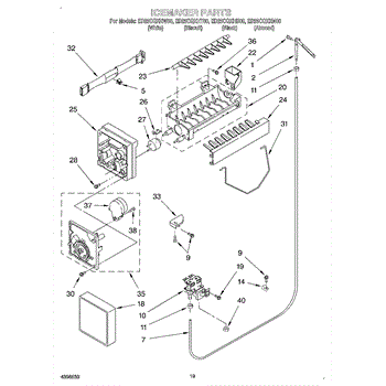Causes of a bad Ice Container Assembly can include cracks or damage to the bin, which can lead to ice leaks or accumulation in the freezer; wear or malfunction of the dispensing mechanism, affecting its ability to deliver ice.