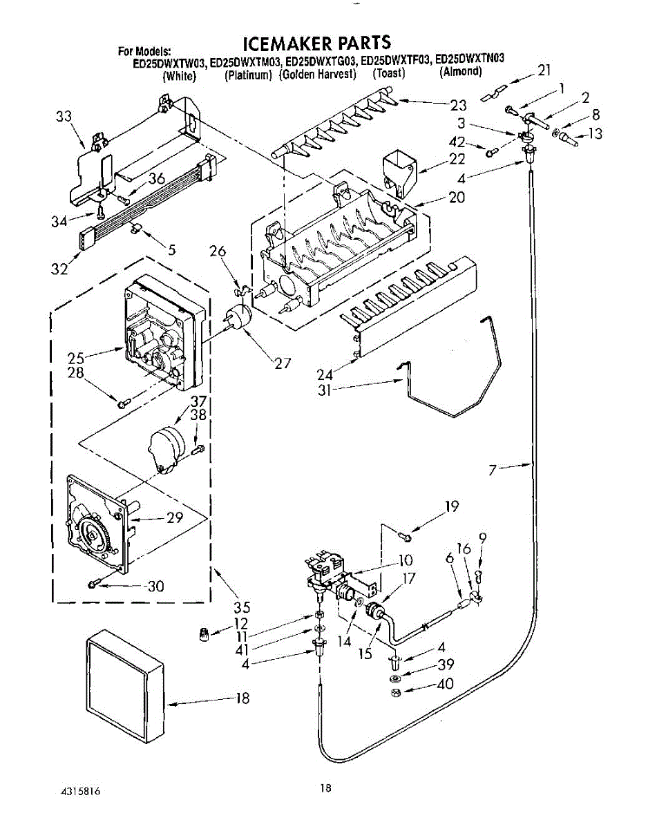 Parts for Whirlpool ED25DWXTG03: 13 - Icemaker, Lit / Optional Parts