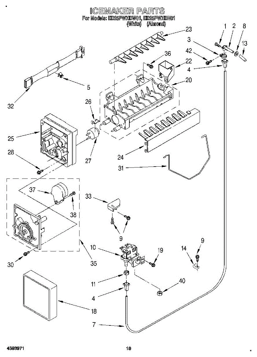 Parts for Whirlpool ED25PWXDW01: 12 - Icemaker, Lit / Optional Parts
