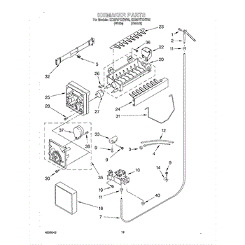 The Ice Container Assembly is an OEM part for Whirlpool refrigerators. This assembly includes the ice bin, where ice is collected, and often features integrated mechanisms or augers for dispensing ice through the refrigerator's door.