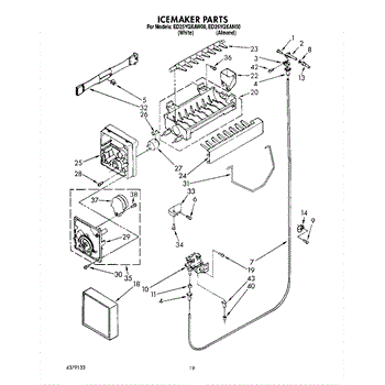 The Ice Container Assembly is an OEM part for Whirlpool refrigerators. This assembly includes the ice bin, where ice is collected, and often features integrated mechanisms or augers for dispensing ice through the refrigerator's door.