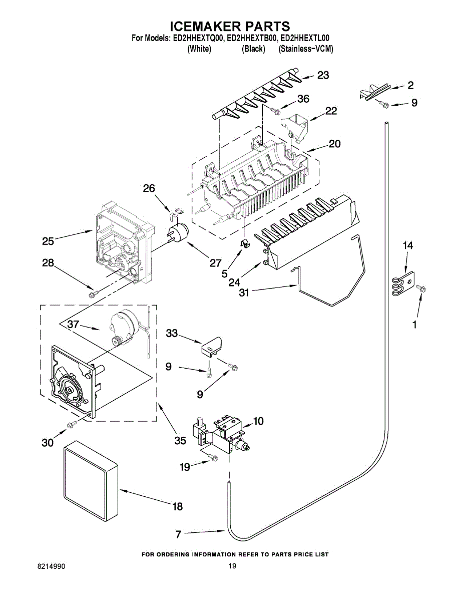 Parts for Whirlpool ED2HHEXTQ00: 12 - Icemaker Parts