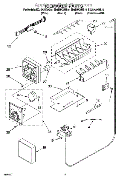 Parts for Whirlpool ED2SHAXMT10: 10 - Icemaker Parts