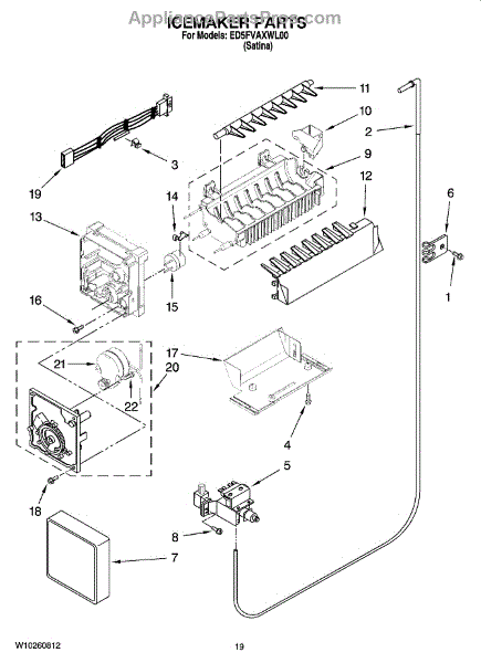 Parts for Whirlpool ED5FVAXWL00: 12 - Icemaker Parts