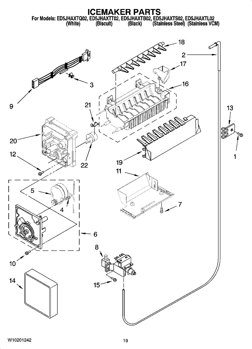 Parts for Whirlpool ED5JHAXTQ02: 12 - Icemaker Parts, Optional Parts (Not Included) Parts
