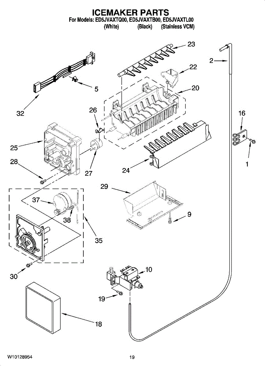 Parts for Whirlpool ED5JVAXTQ00: 12 - Icemaker Parts, Optional Parts (Not Included) Parts