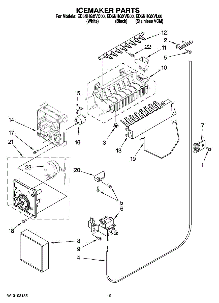 Parts for Whirlpool ED5NHGXVB00: 12 - Icemaker Parts, Optional Parts (Not Included) Parts