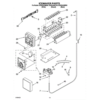 This ice container assembly collects and stores cubed ice produced by the freezer's ice maker, keeping ice contained and ready for dispensing or manual use. Durable molded design fits into the ice maker cavity and funnels ice into the dispenser area. What it does: