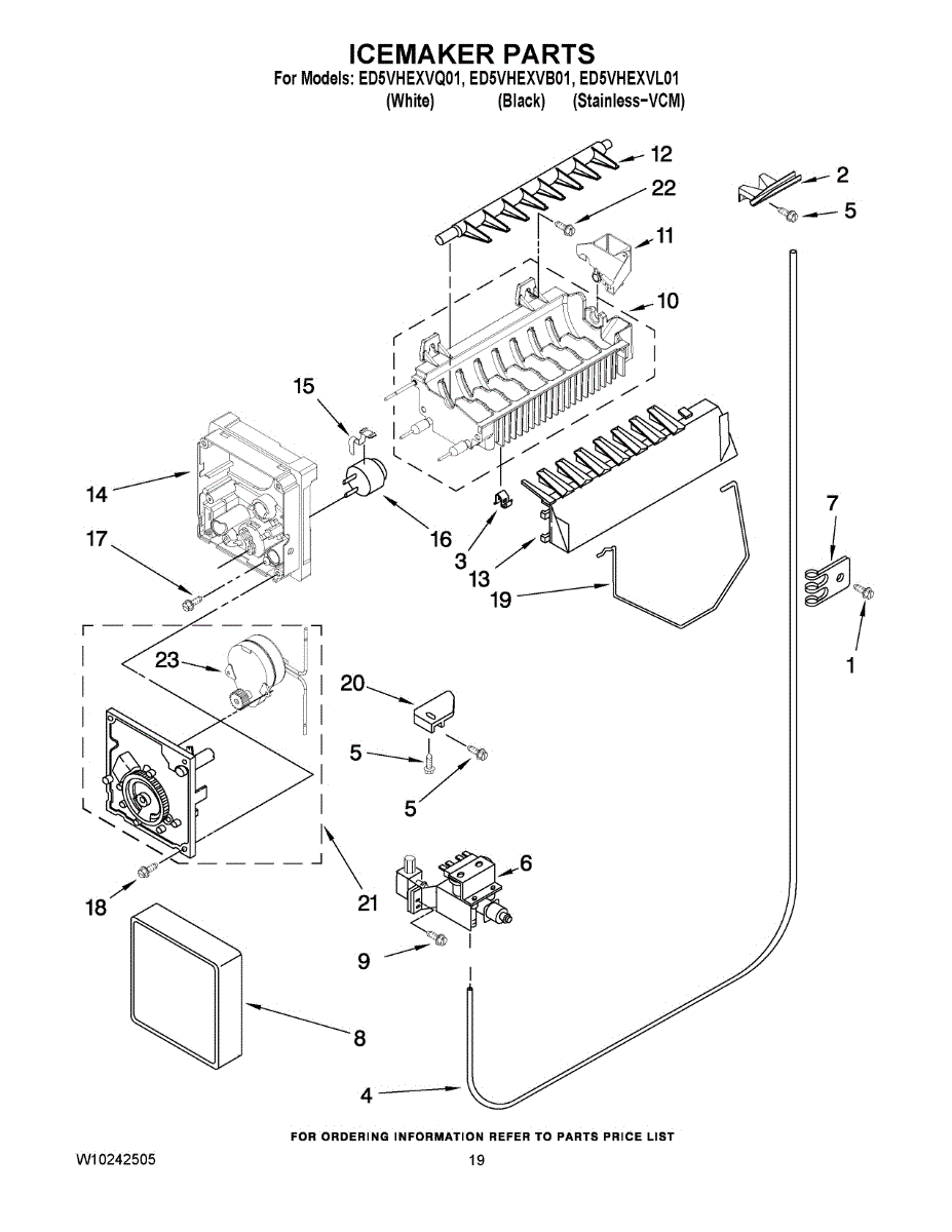 Parts for Whirlpool ED5VHEXVQ01: 12 - Icemaker Parts