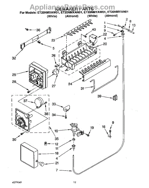 Parts for Whirlpool ET20NMYAW01: 08 - Icemaker, Lit / Optional Parts