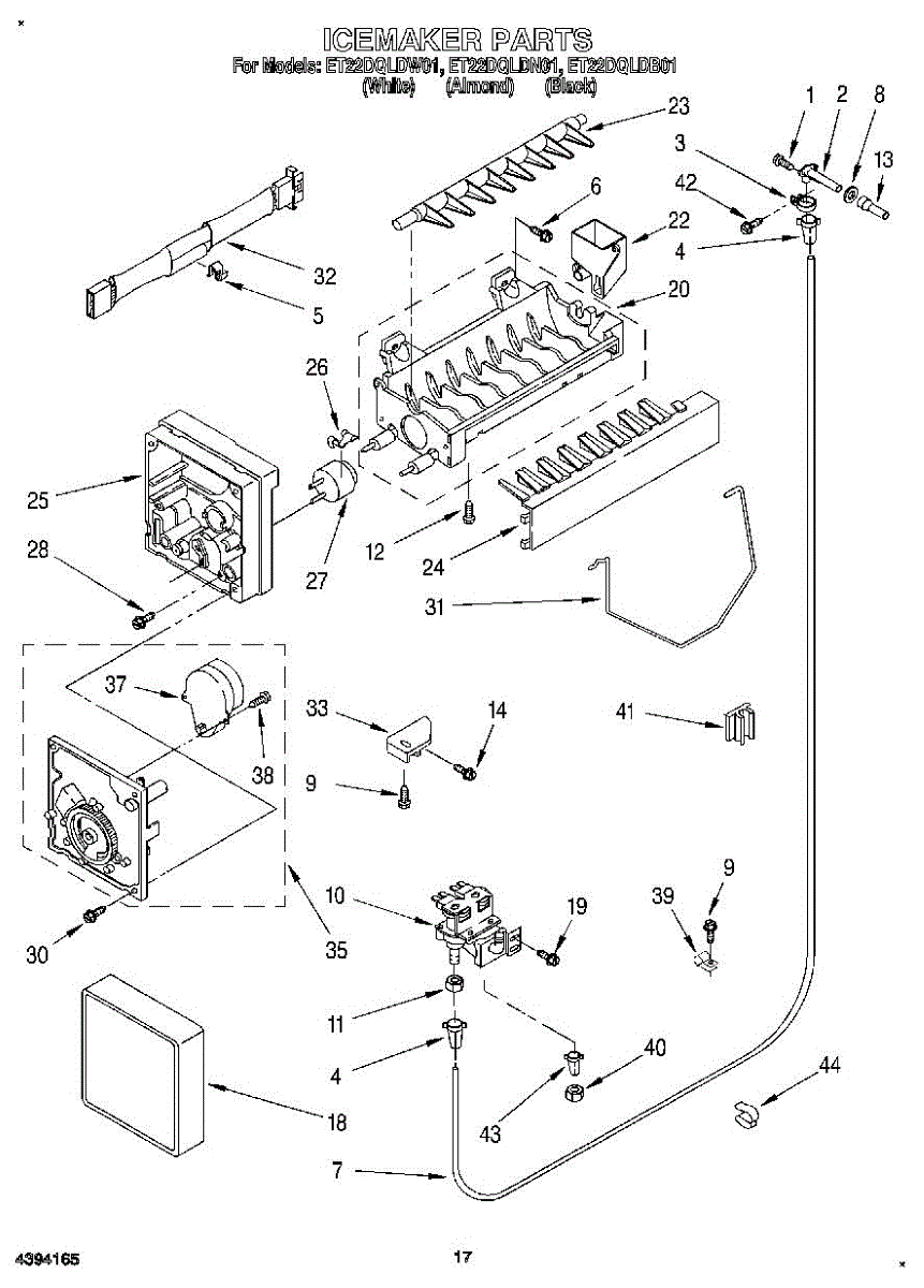 Parts for Whirlpool ET22DQLDB01: 10 - Icemaker Parts