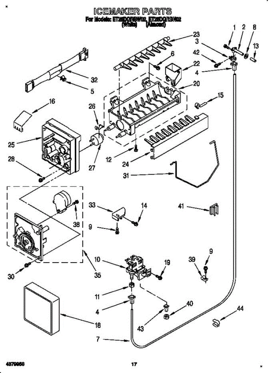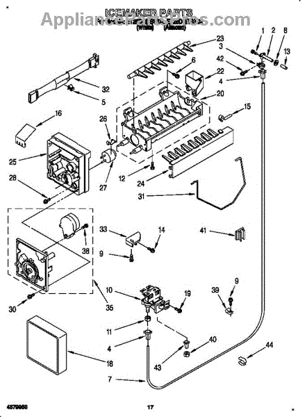 Ice maker leaking or shutoff arm broken? This fill cup and bearing assembly directs water into the mold and supports the arm. 15-minute DIY fix.