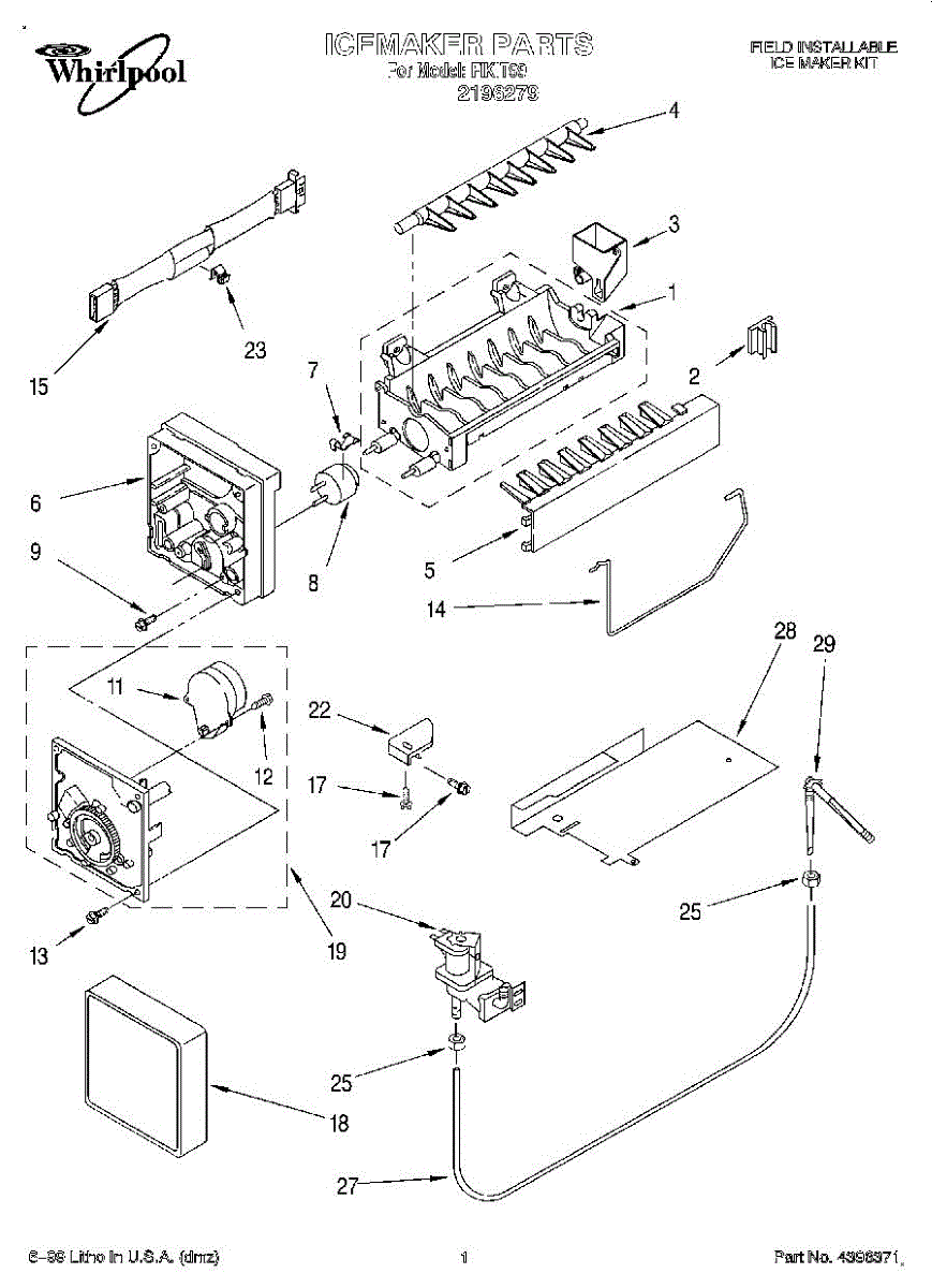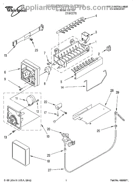 Ice maker leaking or shutoff arm broken? This fill cup and bearing assembly directs water into the mold and supports the arm. 15-minute DIY fix.