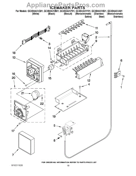 Parts for Whirlpool GC3SHAXVA01: 12 - Icemaker Parts