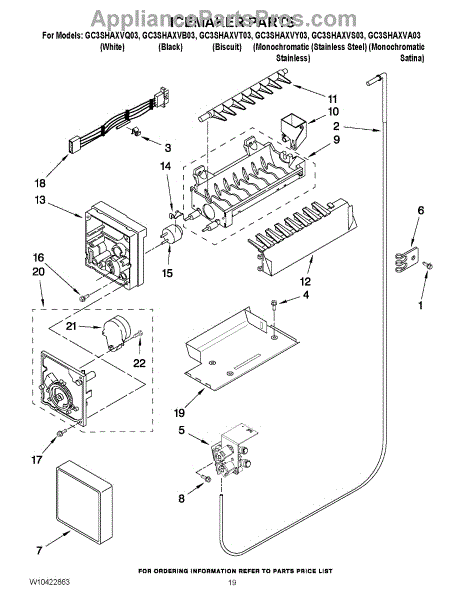 Parts for Whirlpool GC3SHAXVT03: 12 - Icemaker Parts