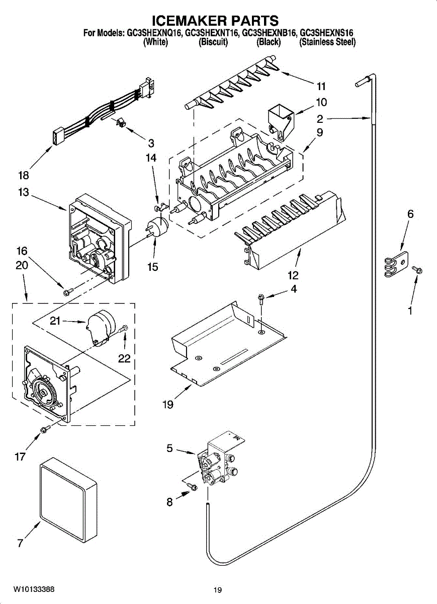 Parts for Whirlpool GC3SHEXNT16: 12 - Icemaker Parts, Optional Parts (Not Included) Parts