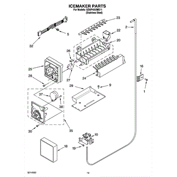 Parts for Whirlpool GD5PHAXMS11: 12 - Icemaker Parts
