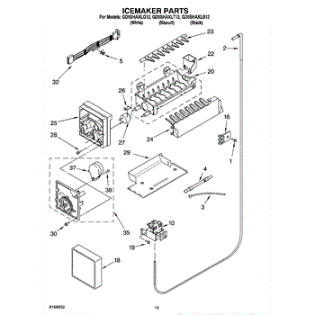 Parts for Whirlpool GD5SHAXLQ12: 12 - Icemaker Parts