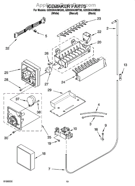 Parts for Whirlpool GD5SHAXMT00: 12 - Icemaker Parts