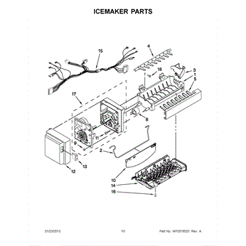 The Ice Maker Assembly is an OEM part for Whirlpool refrigerators, designed to replace your fridge's original ice-making unit. This assembly is responsible for ensuring a consistent and reliable supply of ice, featuring components such as the ice mold, the water inlet valve, and the ice ejector arms.