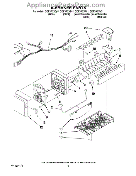 Parts for Whirlpool GI0FSAXVQ01: 05 - Icemaker Parts