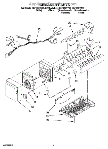 Parts for Whirlpool GI5FSAXVB00: 05 - Icemaker Parts
