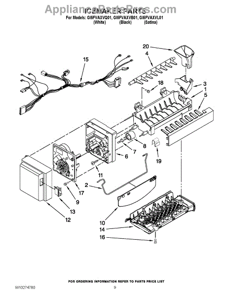 Parts for Whirlpool GI5FVAXVB01: 05 - Icemaker Parts
